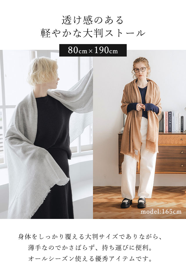 カシミヤ 100%ストール レディース カシミア 大判 薄手 07.パープル