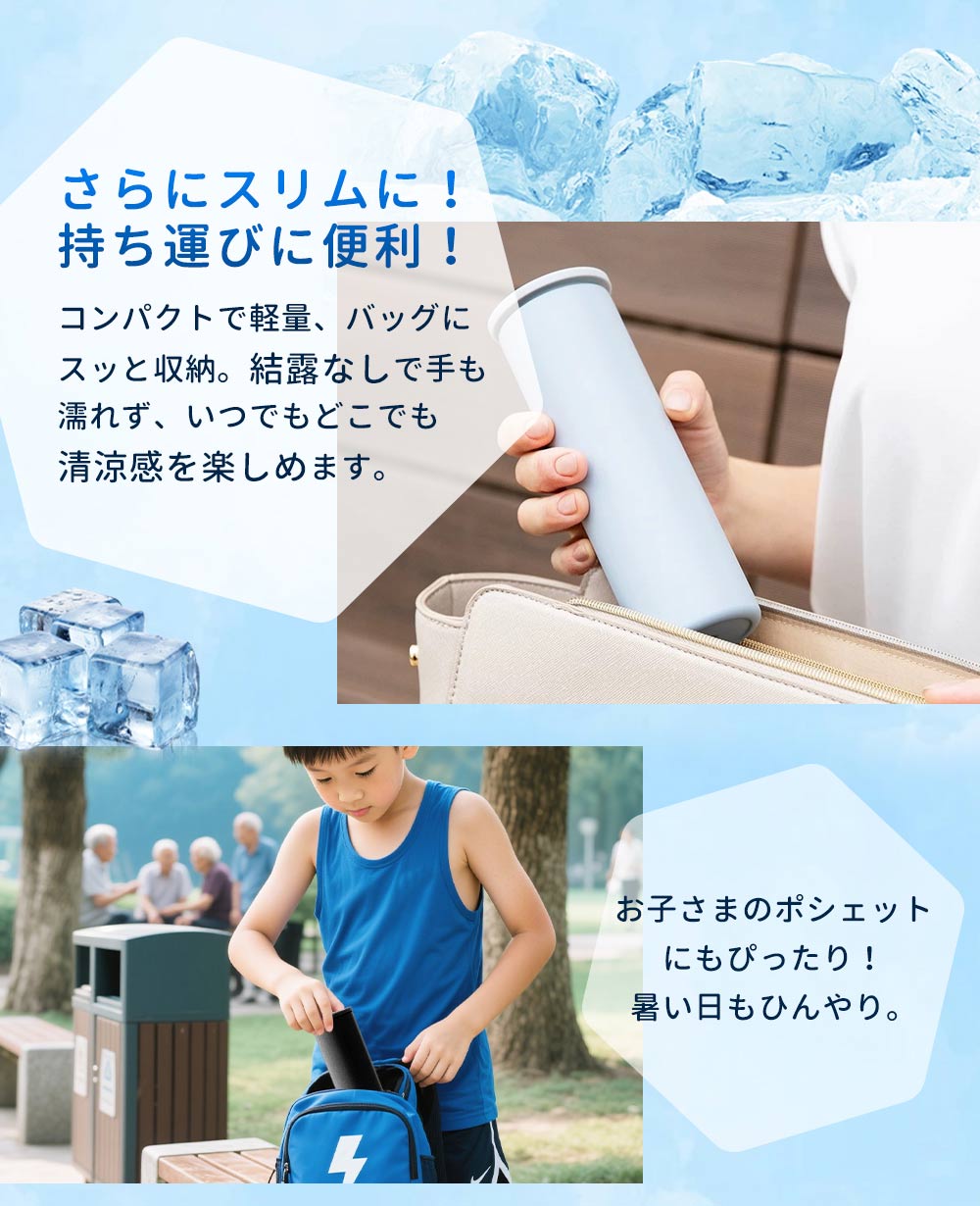 【スマートデザイン】スリムなスティック型だからカバンにすっぽり入り邪魔しません。