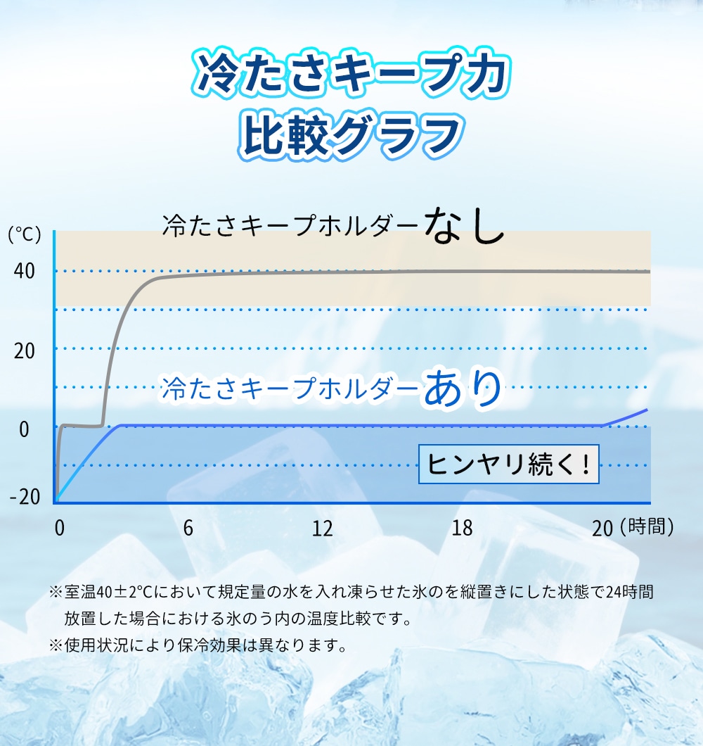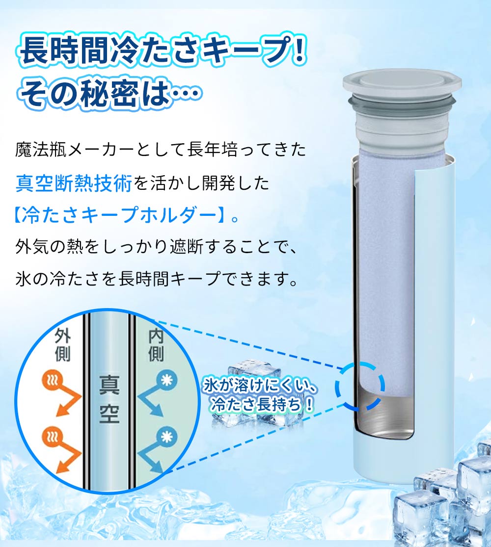 【長時間温度を保つ】魔法瓶メーカーが作る真空断熱構造で、中の温度を長時間保ちます。0°が約20時間保ちます。