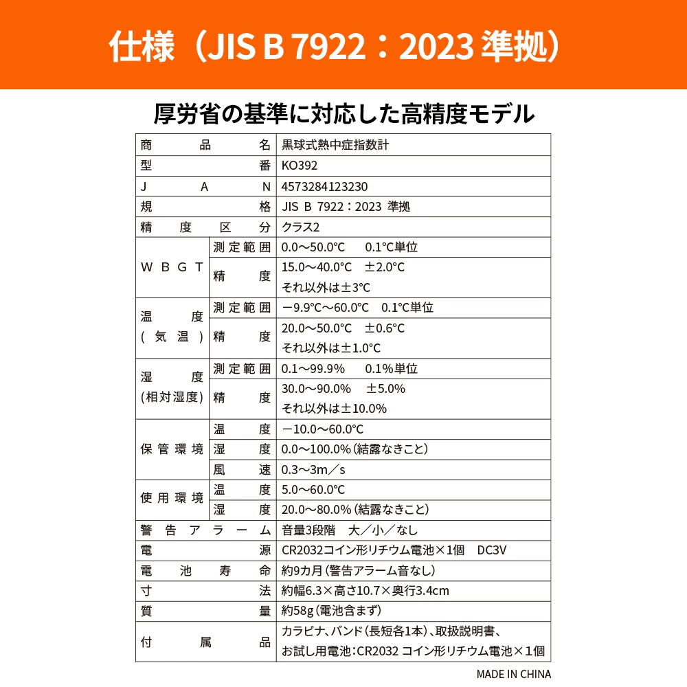 ) WBGT精度 15.0~40.0℃:±2.0℃