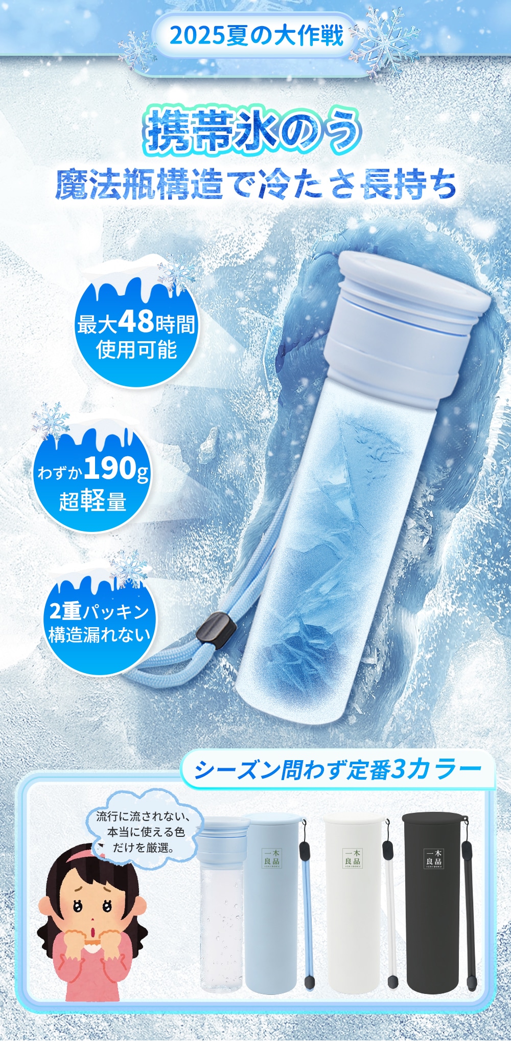 【長時間温度を保つ】魔法瓶メーカーが作る真空断熱構造で、中の温度を長時間保ちます。0°が約20時間保ちます。
