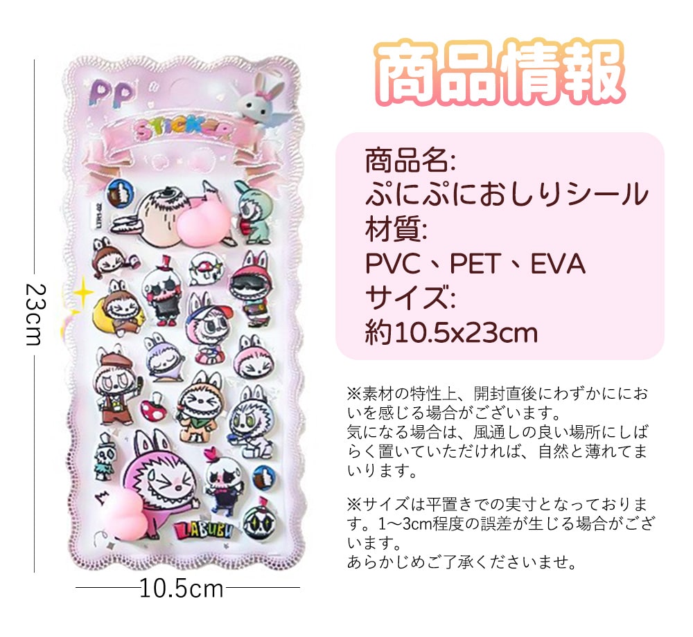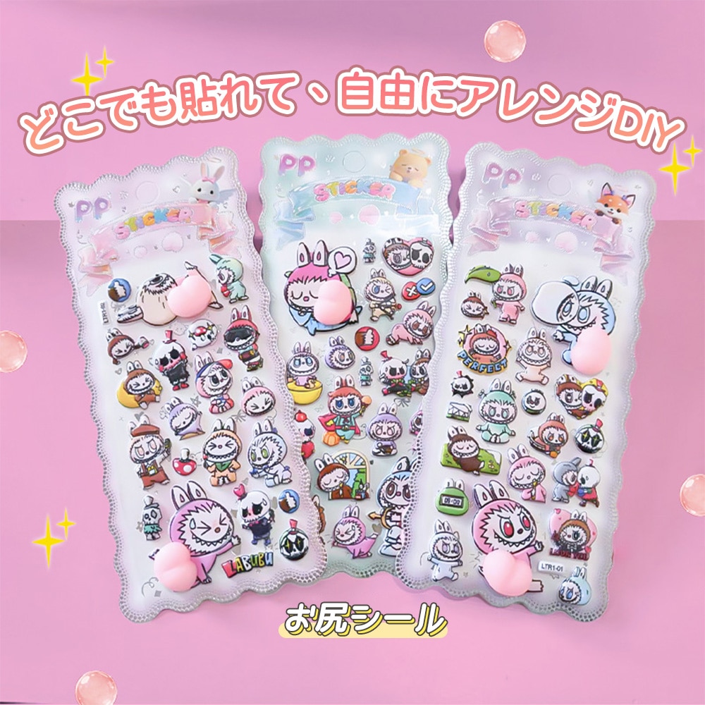 【ぷにぷに感触】おしり部分がぷにぷに立体仕様で、押すとやわらかいスクイーズ感触。ストレス解消や癒しグッズとしても楽しめます。 【立体3Dステッカー】通常のシールよりも厚みがあり、手帳・スマホケース・ノート・アルバムなどを立体的にデコレーション可能。 【ギフトにもおすすめ】キラキラ&カラフルなデザインで、誕生日プレゼントやプチギフト、子供会や景品にも最適。 【多用途に使える】日記、手帳、スクラップブック、スマホ、パソコン、文房具など幅広くデコレーションできる万能ステッカー。 【安心素材】ぷにぷに部分はやわらかいTPR樹脂、シートは耐久性のあるPVC素材を使用し、安全で長く楽しめます。 送料無料