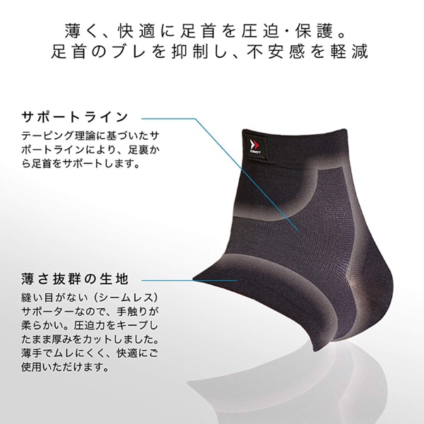 独自のサポートラインによって、足裏から足首を優しくサポートします。