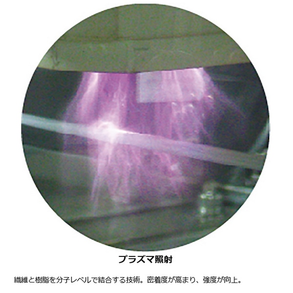 繊維と樹脂を分子レベルで結合する技術。密着度が高まり、強度が向上。