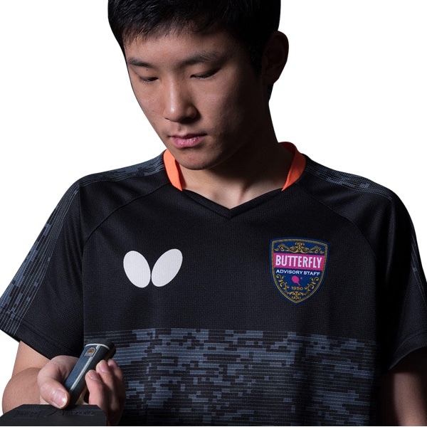 張本選手の前陣での超攻撃的な両ハンドプレーを支えるラケットです。