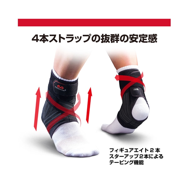 テーピング機能の2ほんのスターアップト独自設計ステーに、2本のフィギュアエイトを追加。内反・外反をしっかり抑制し足関節もさらに安定。