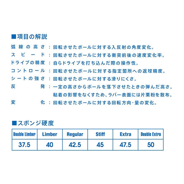 柔らかめのスポンジで操作性を高め、従来の切れ味と変化はそのままに、ツッツキや攻撃の安定性が向上。