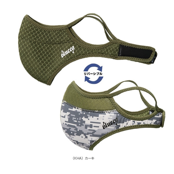 ●通気性に優れたAIR MESHを採用することで鼻呼吸の不快感を低減し、マスク内にこもった熱を循環。立体的に編んだAIR MESHは形状をキープしやすく、運動中の呼吸によって口元に張りつくといった不快感を軽減します。飛沫が飛びにくい口元部分の二重構造は、ウェアとのバランスやその日の気分に合わせてリバーシブルでの着用もアクセントになります。ストレスが掛かりやすい耳部分にはパイピングテープを使用し、ベルクロ付きベルトは止める位置や角度を調節することで様々な顔の形、首の太さにフィット。