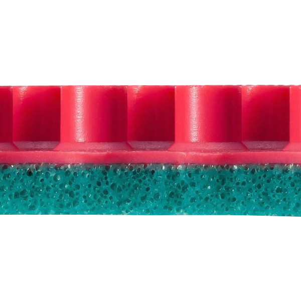 ラバーの特徴を引き出すためにルール限界のツブ形状比率に設計した硬めのシートと「アブソーバー スポンジ ドロップ」の組み合わせは、カット性ブロックのような台上で短く抑える打球に加え、鋭いナックル性プッシュなど独創的な攻守において高い性能を発揮します。