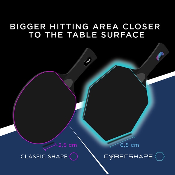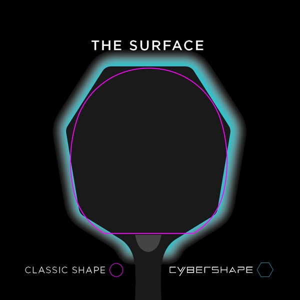 そのため、私たちは数年間、新しいタイプのラケット開発、テスト、改良に取り組み、これにより新しいプレイスタイルが構築されると信じています。そして今、私たちはその結果を発表できることを誇りに思っています。サイバーシェイプ、これまでに見たり経験したりしたことのない、独特の特徴を持つ六角形のラケット。