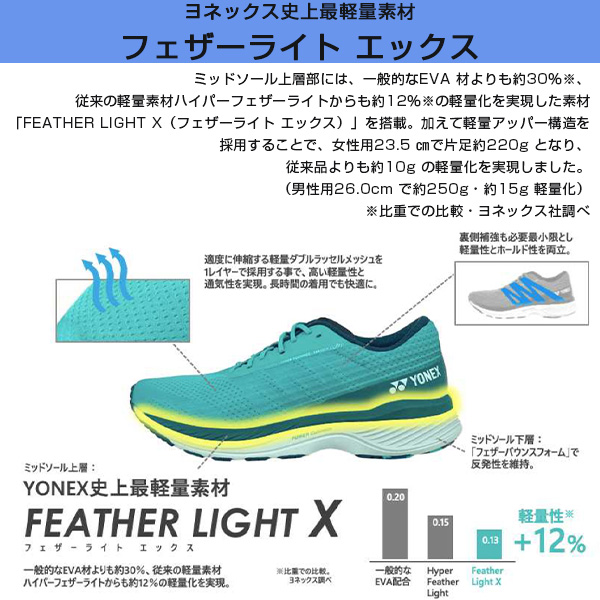 ヨネックス史上最軽量のミッドソール素材。一般的なEVA材と比べ約30%軽量化。