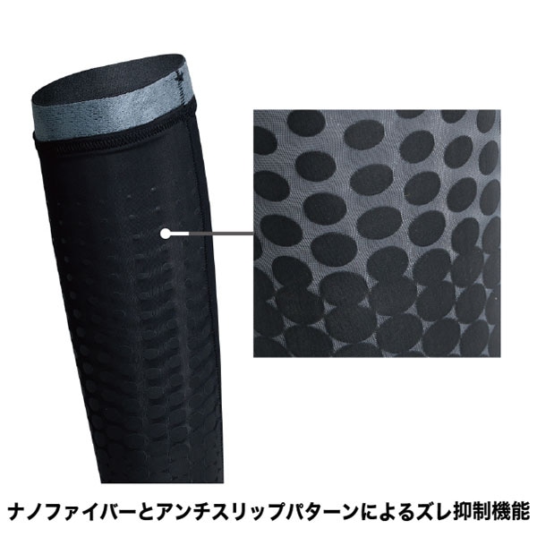 製品上端に配置されたナノファイバーと、内側にデザインされたアンチスリップパターンで、激しい動きでもズレ落ちを抑制。