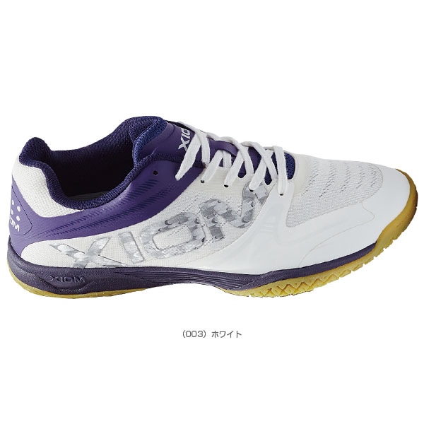 大胆にあしらわれたXIOMロゴと、ホワイト・ブラック・ネイビーのキーカラーでスタイリッシュさが際立つシューズ。