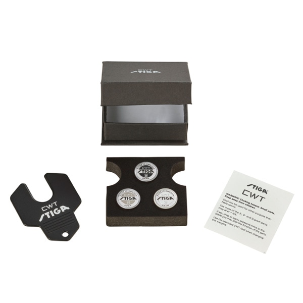 「CWT」とは、その革新的なラケット形状とは別に、CWT( カスタムウェイトテクノロジー)を備えたラケット。 CWTは、グリップの底に簡単に取り付けることができ3、6、9グラムの3つの重量パーツを使用してラケットの重量とバランスを調整できるSTIGAの最新テクノロジー。カスタマイズ可能なCWT重量パーツにより、様々なプレイスタイルに適合する柔軟なラケットを実現。