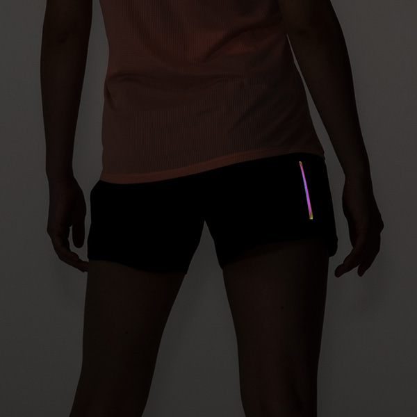 横2方向のストレッチで不快なつっぱり感を軽減する素材を採用したランニングパンツ。ナイトランをサポートするオーロラ反射プリントを搭載しています。