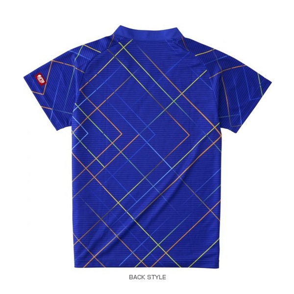 シャープな直線的なカラーラインの重なりで「明日を切り開く」を表現したシンプルなゲームシャツです。