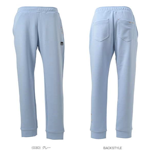 カラフルなロゴとステッチプリントが映えるジョガーパンツ。
