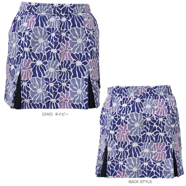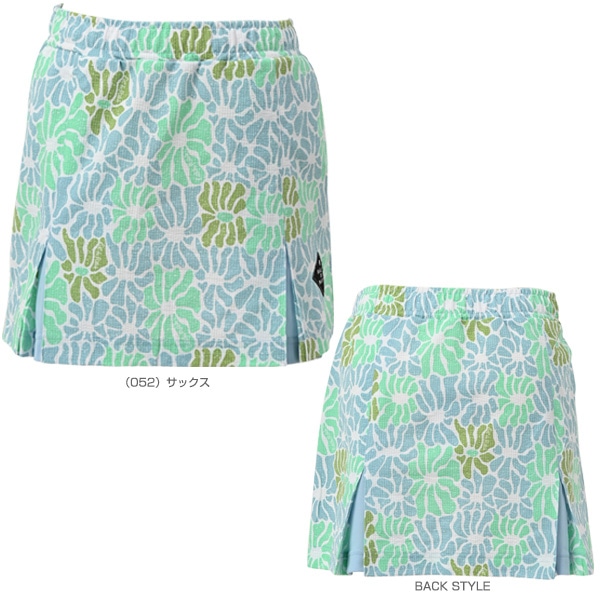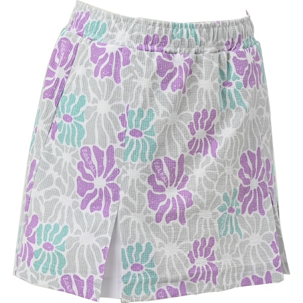 伸縮性のあるサッカー素材が涼しく快適な、フラワーモチーフのボックスプリーツスコート。