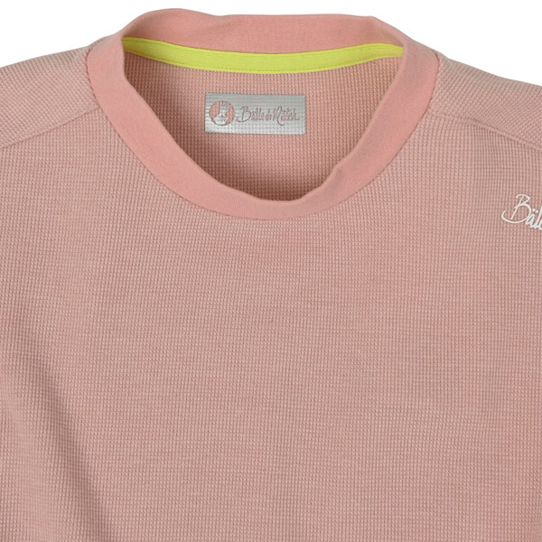 ワッフル素材で通気性・伸縮性に優れ、着心地の良い薄手トレーナー。