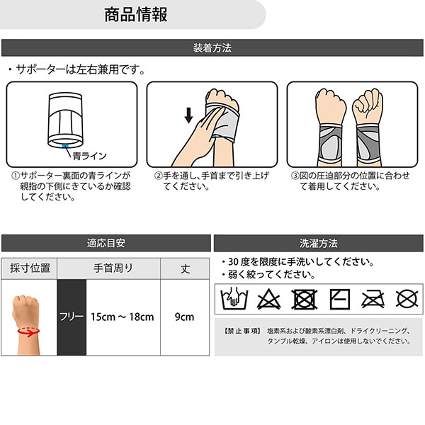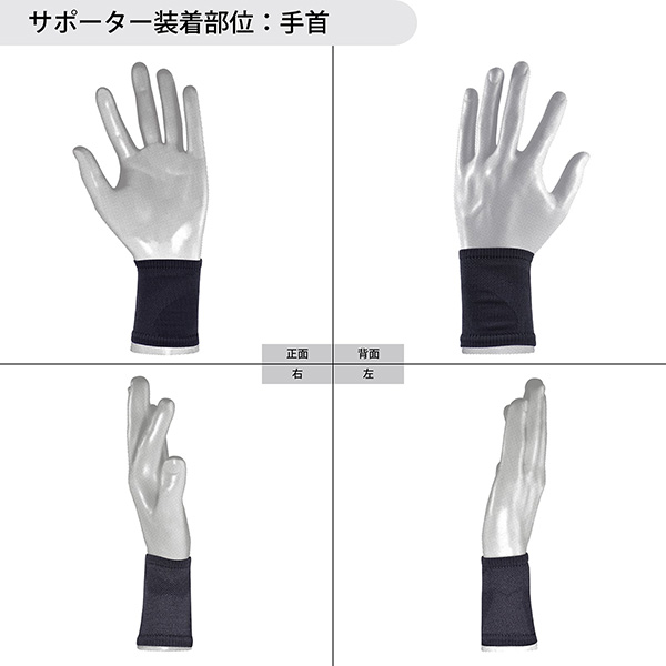 スポーツテーピング理論に基づき、手首を強弱のある圧迫で動きをアシスト。
