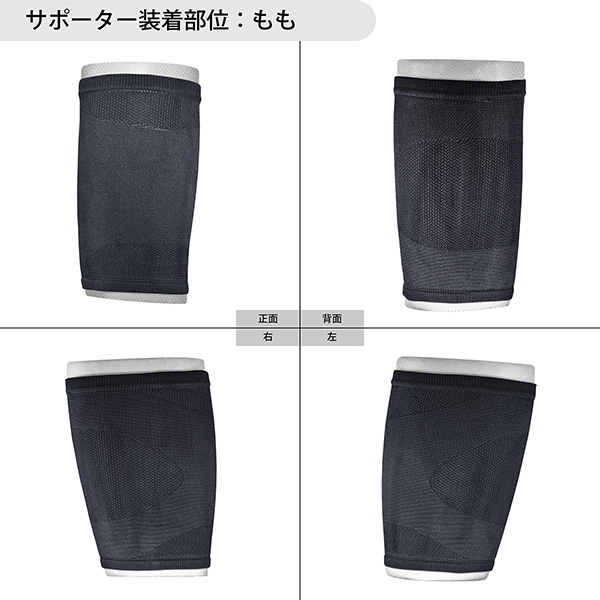 スポーツテーピング理論に基づき、強弱のある圧迫でももの動きをアシスト。