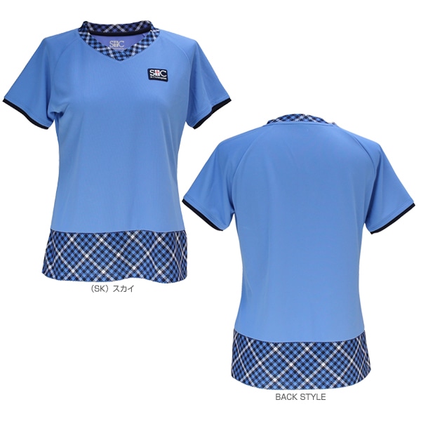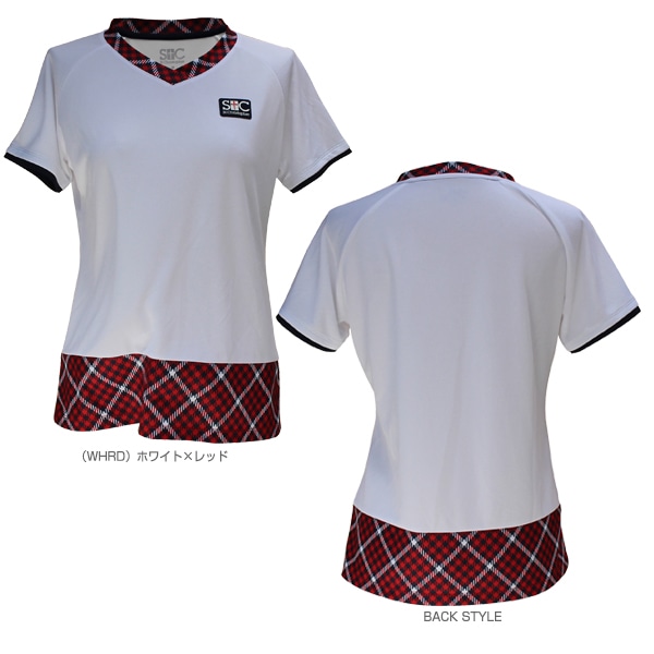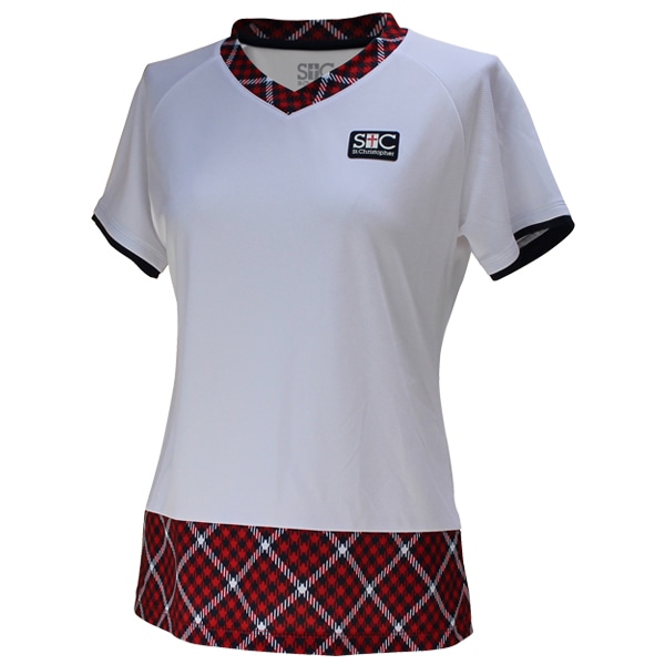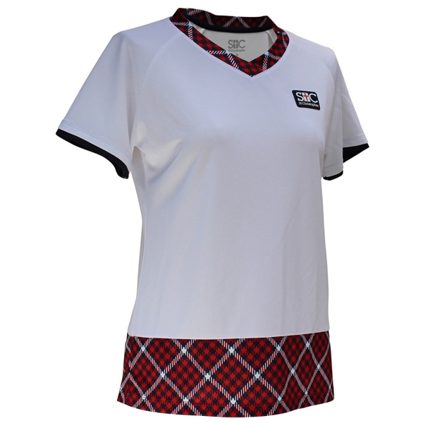 [セントクリストファー テニス・バドミントンウェア(レディース)] Vネックチェックゲームシャツ/レディース(STC-BDW2355)