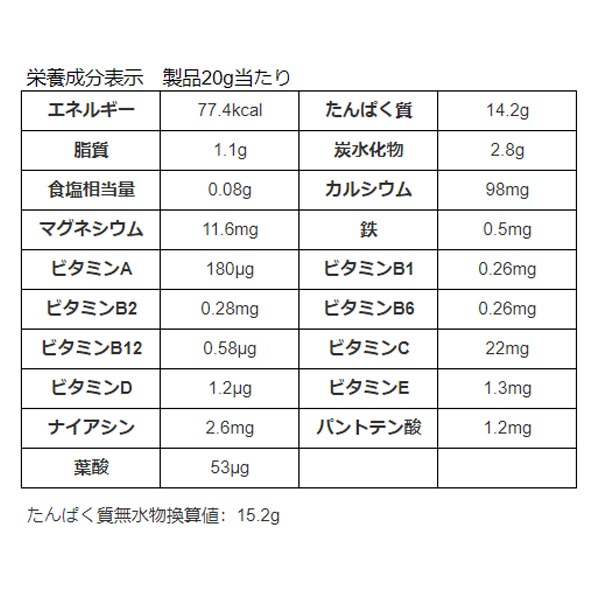栄養成分表示:製品20g当たり