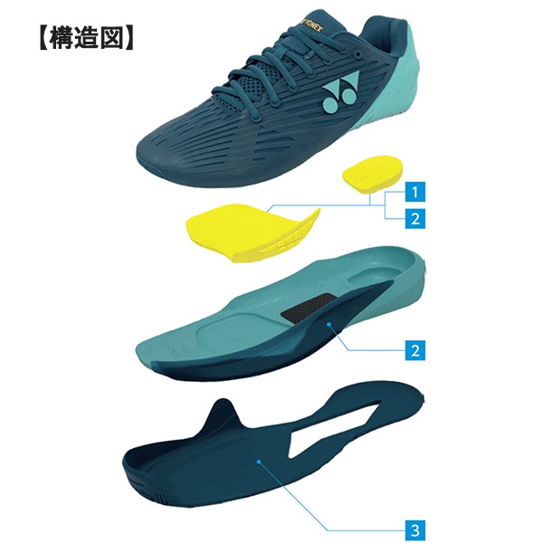 親指の圧迫感を解消したつま先設計とし、かつ、中足部とかかと部のサポート性を高めることで、シューズ内の足のズレを抑え、パワーロスのない素早いフットワークを実現。