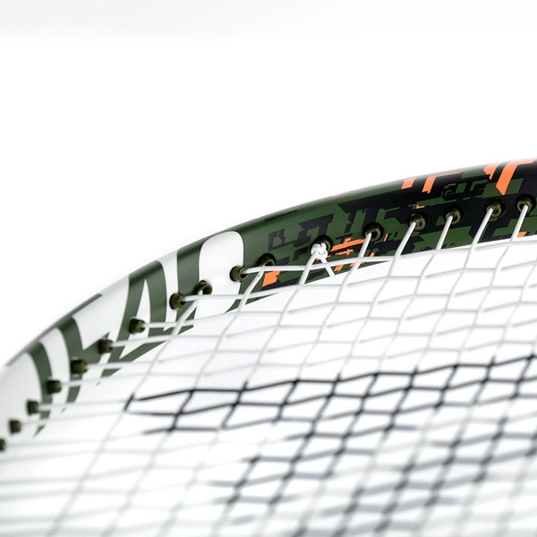 全周のグロメットホールを通常よりも20%拡大することで、ストリングの可動域を拡大し、ホールド感のあるフィーリングとたわみ戻りによるパワーを生み出します。