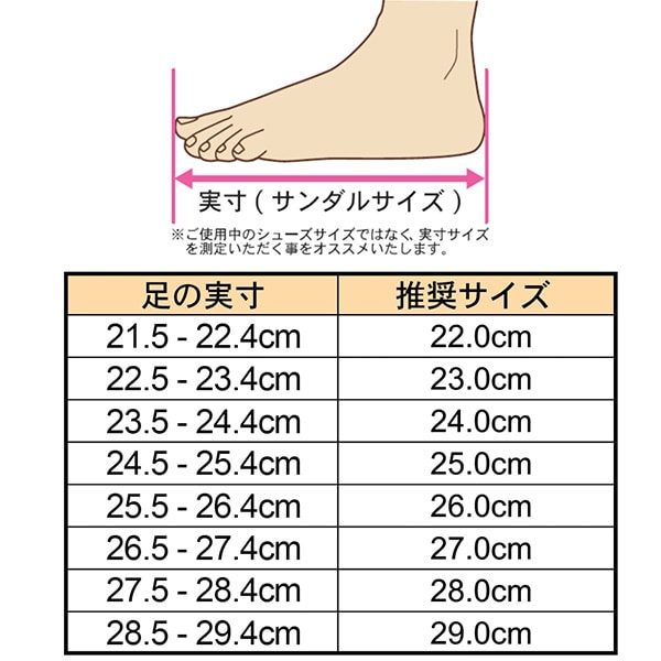 ※サンダルはシューズサイズではなく、足の実寸サイズでお選びいただくことをおすすめします。