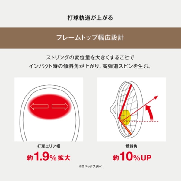 ストリングの可動量を増加させ、ボールを回転させるための食い付きとスナップバックを発揮。