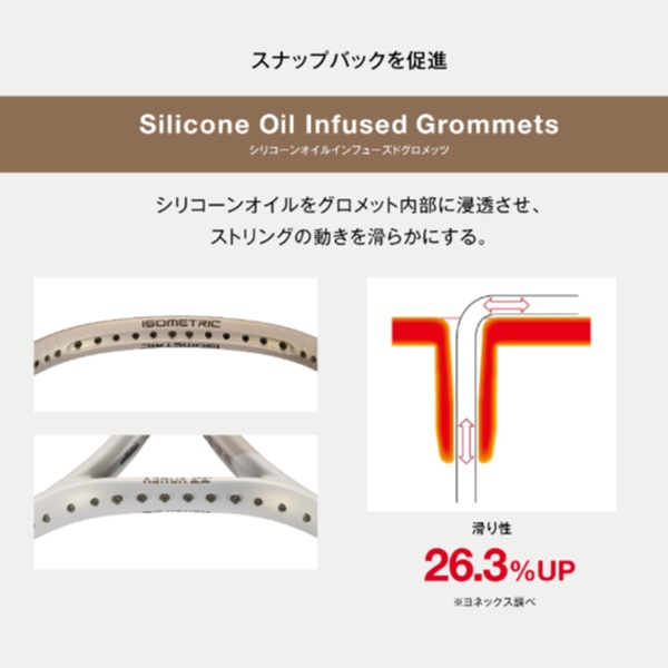 ストリングの可動量を増加させ、ボールを回転させるための食い付きとスナップバックを発揮。