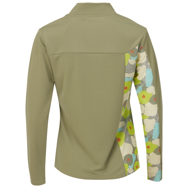 ハイネックスタイルが洗練された印象を与え、定番のメッシュ素材をベースにしたフラワーカモフラージュ柄の生地は、吸水速乾性に優れています。