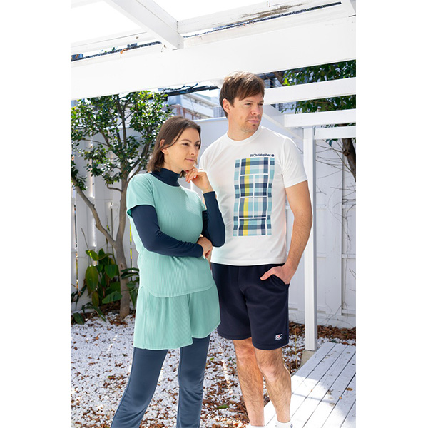 テニスコートをカラーダイアゴナルチェックで表現したゲームシャツ。