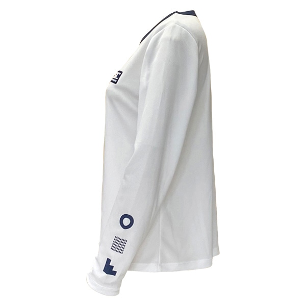 袖にテニスにまつわるアイコンをチックタックトープリントした長袖シャツ。