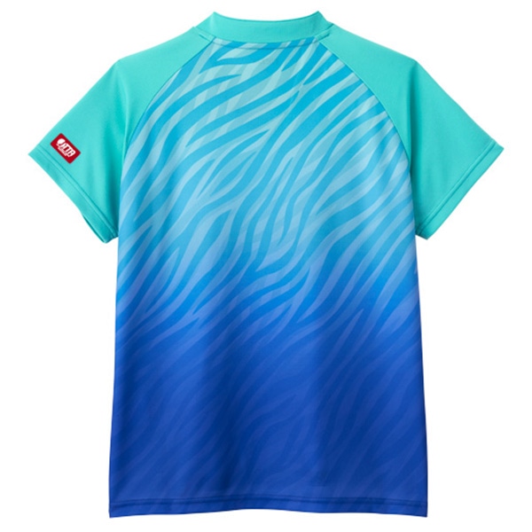 シンプルなゼブラ柄のグラデーションがスタイリッシュなレディースゲームシャツ。ブランドロゴは全日本選手権モデルだけのゴールド刺繍。