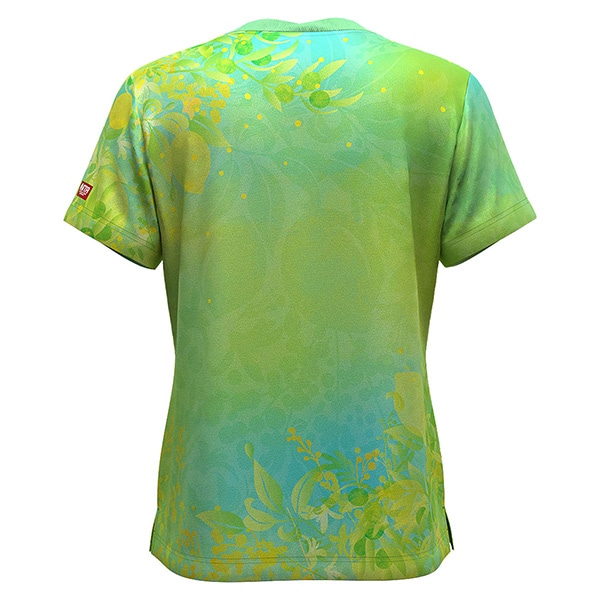 植物の柄がきめ細やかにデザインされたレディース用ゲームシャツ。