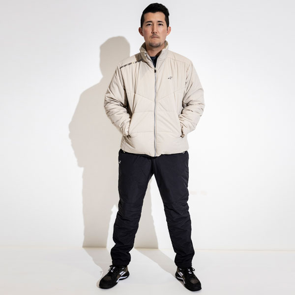 冬場の厳しい環境下で活躍する機能性中綿素材「COZMIX REBORN」採用FW用ウォームアップジャケット。
