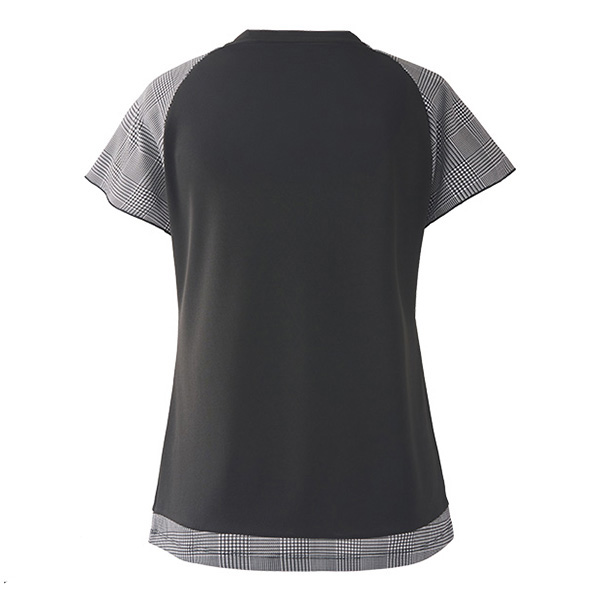 ラグラン袖部分と裾部分にグレンチェックをプリントしたゲームシャツ。