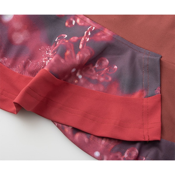 裾のフレアが重なるようなアシンメトリーデザインでより動きを華やかに演出。