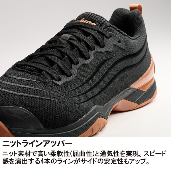 素材:アッパー:RPU(合成樹脂)+合成繊維 アウトソール:耐摩耗ラバー ミッドソール:モールデッドEVA+3DStabilizer LITE+DoubleShank+REPULSIONCUSHION