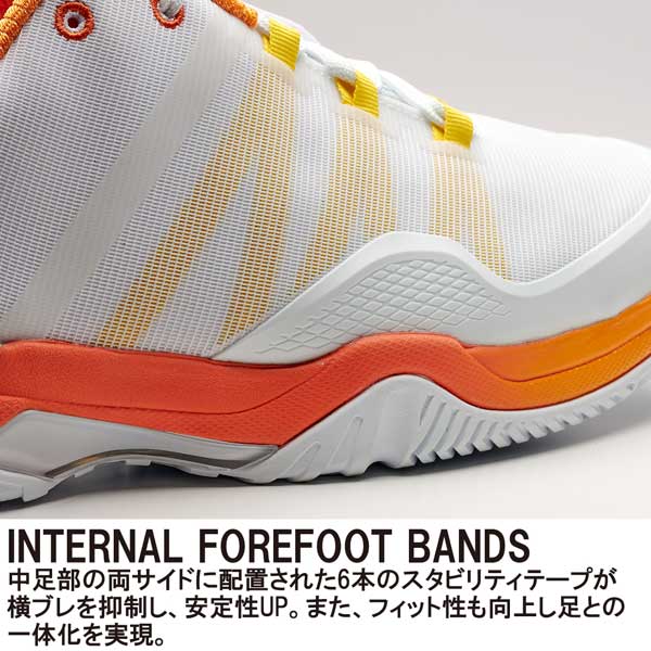 素材:アッパー:RPU(合成樹脂)+合成繊維 アウトソール:耐摩耗ラバー ミッドソール:モールデッドEVA+3DStabilizer II+DoubleShank+Forward Assist Insert+Impact Catcher