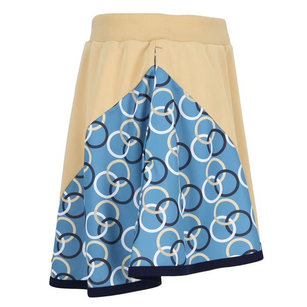 アシメトリーなプリントと裾周りのバインダ一が軽やかに動く度にアクセントになります。
