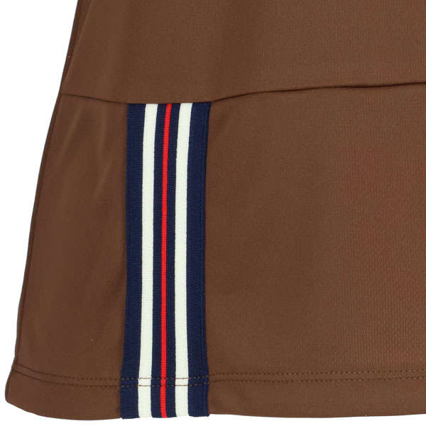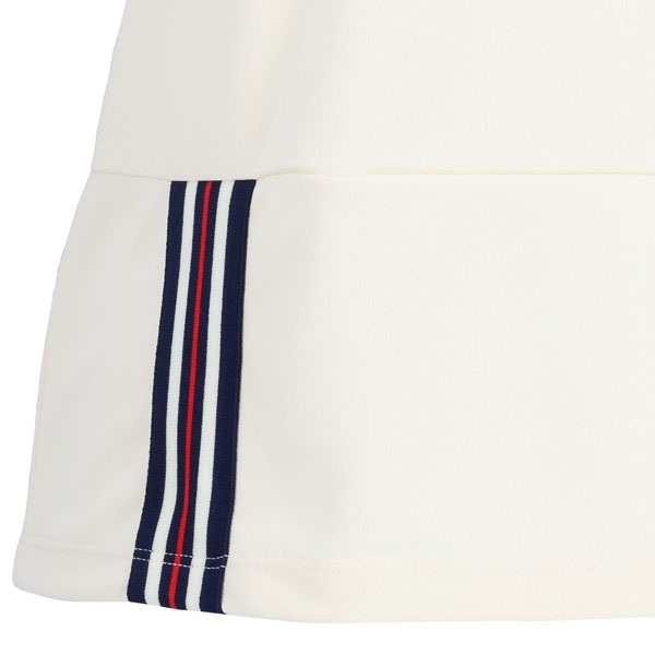 身頃にヘリテージテープアクセントがあり、 胸元はすっきりしたデザインです。