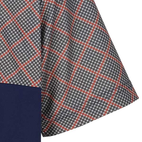 グレンチェックプリントをバイアス使いで切り替えたゲームシャツ。
