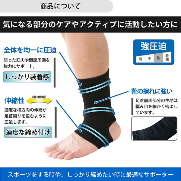 足首を気にせずにアクティブに活動したい方に、強圧迫でしっかりと締め付けます。