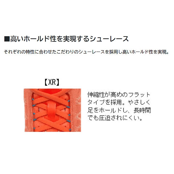 アッパーには、それぞれの走行スピードに合わせたホールド性を発揮するシューレースを採用しており、長時間でも快適に走ることができます。