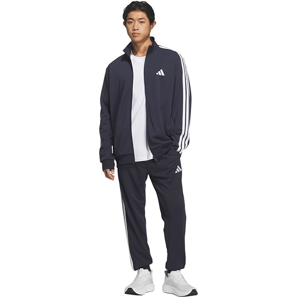 スリーストライプスレギュラーフィットダブルニットカフ仕上げトラックパンツ(ジャージ)で、一日を過ごそう。