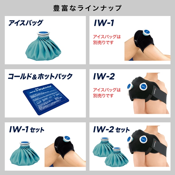 ザムストアイスバッグの他にも、使用状況に応じて様々な形状の冷却材を使用することができます。