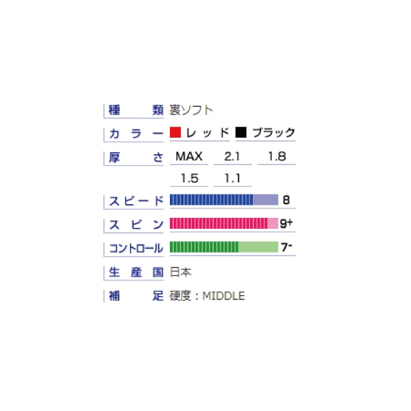 回転力のあるシートと、しっかり弾むスポンジとの理想的なバランスが、抜群のボールコントロールを発揮します。